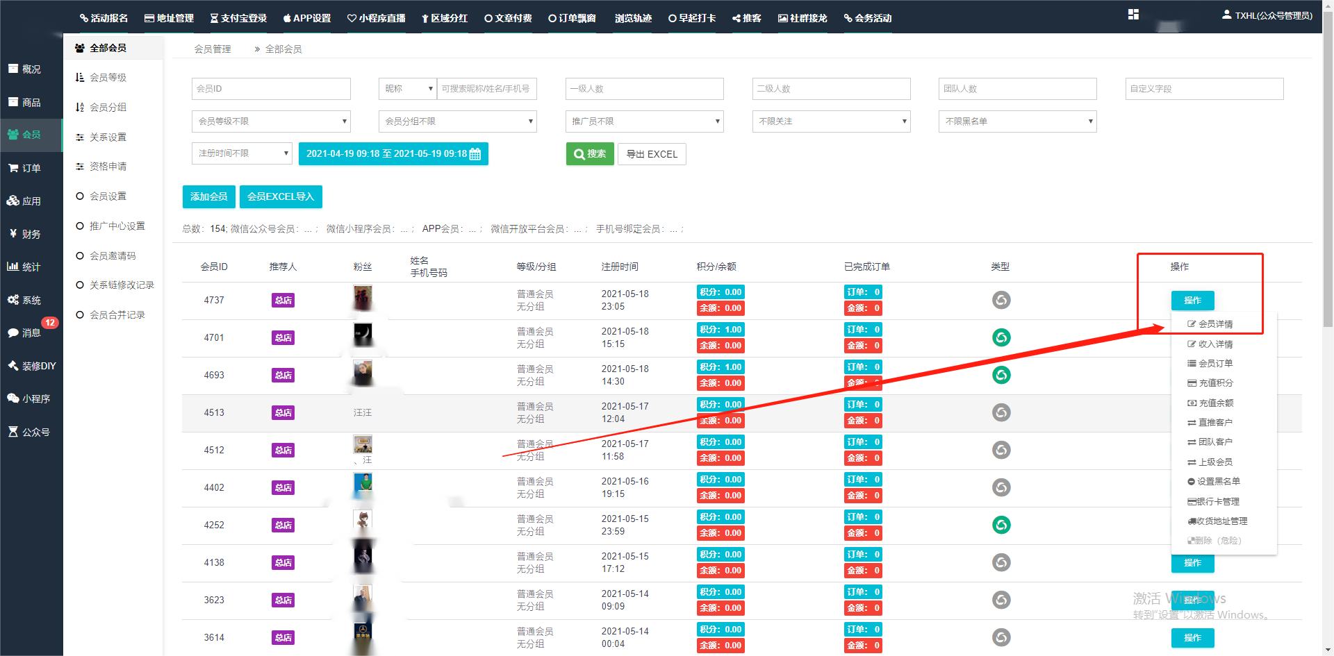 目录 搜索 展开 一、前期准备资料二、数字乡村码-上线操作指南1、服务号的申请流程及认证2、申请小程序流程3、开放平台绑定小程序和公众号三、数字乡村码-系统操作数字乡村码系统管理-概况数字乡村码-商品管理1、发布商品2、商品列表3、商品表单4、商品分类5、品牌管理6、配送模板7、评论管理8、优惠券管理9、商品标签10、退货地址设置11、满额优惠12、批量操作13、配送方式14、基础设置15、商品隐藏四、数字乡村码-会员管理1、全部会员2、会员等级3、会员分组4、资格申请5、会员设置6、推广中心设置7、会员邀请码8、会员关系链修改关系链修改记录9、会员合并记录10、账号注销管理11、会员设置中心五、数字乡村码-订单管理1、订单管理列表2、订单处理流程3、订单状态4、订单修改价格5、订单退款退货6、多包裹发货7、批量发货订单操作步骤8、催发货订单9、物流查询六、数字乡村码-财务管理1、余额设置2、会员余额3、充值记录4、转让记录5、余额明细6、收入明细7、提现设置8、提现统计9、积分管理10、转账审核11、收益广告12、批量充值七、数字乡村码-系统管理1、商城入口2、商城设置①、商城设置②、订单设置③、物流查询④、短信⑤、联系方式⑥、分类⑦、优惠券⑧、分享⑨、幻灯片⑩、广告位⑫、地图设置3、交易设置4、微信模板消息自定义消息模板(新版)自定义消息模板(旧版)小程序消息模板公众号模板消息变更公告5、语言设置6、权限管理7、多媒体管理八、数字乡村码-消息管理九、数字乡村码-应用管理十、数字乡村码系统-数据统计十一、数字乡村码-页面装修DIY1、模板管理2、店铺页面3、顶部导航4、底部导航5、DIY模板市场6、首屏广告7、基础设置8、装修DIY尺寸建议十二、供应商功能插件操作指南1、供应商2、门店-收银台门店申请和使用步骤门店管理①、门店-收银台 营销设置②、门店-收银台 分润设置门店分类门店申请门店审核门店商品门店商品订单收银台订单数据统计核销员基础设置默认设置门店装修3、微社区4、会务活动十三、营销插件操作指南活动报名提货卡新人奖微店问卷调查积分视频分享1、视频分享基础设置2、视频分享发现管理3、视频分享分类管理4、视频分享评论管理5、视频分享分红记录6、视频分享短视频中心每日红包幸运大抽奖签到优惠券二维码任务奖励优惠劵文章音频文章付费文章限时购新海报拓客卡操作流程积分活动素材中心视频红包十四、入驻门店应用类1、门店预约2、附近商品3、门店定位设置4、门店控制5、门店满额包邮6、门店满额减7、导入商品8、门店搜索9、门店股东10、核销券11、多门店核销1、商城后台设置2、前端功能演示十五、常见问题1、后台登录密码修改流程2、会员-余额,积分,后台如何进行充值与扣除3、如何修改上下级关系4、一种万能的获取商城小程序路径的方法 暂无相关搜索结果! 阅读次数:2143 本文档使用 模王系统 发布 3、如何修改上下级关系 如何修改上下级关系一.如何修改上下级关系?1.会员-全部会员-可以通过搜索用户的独立ID,或者用户微信昵称,找到此会员,然后点击右边的(操作)2.再点击会员详情。3.滑到下面,有个推广信息-会员上线,点击修改4.输入上级的ID号,点击搜索,出来此上级会员后点击选择。5.滑到最下面,一定要点击提交按钮。文档更新时间: 2024-01-05 14:50 作者:链上旅行